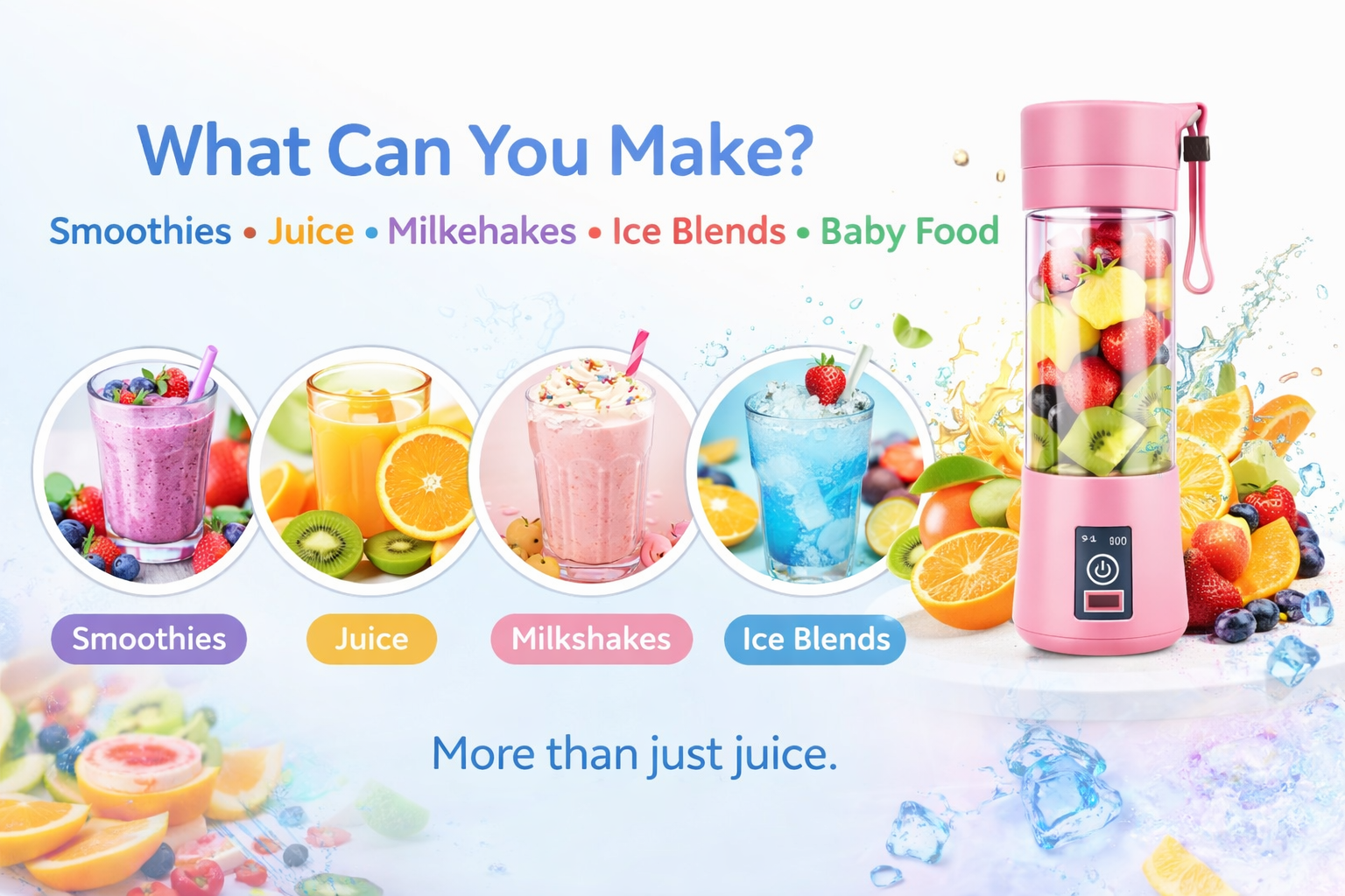 - True Wireless & Rechargeable – No cords needed, blend anytime, anywhere.